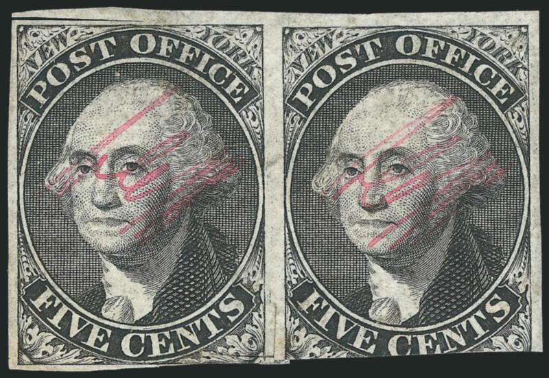 New York N.Y., 5c Black, "ACM" Initials (9X1). Horizontal pair, original gum, large margins t