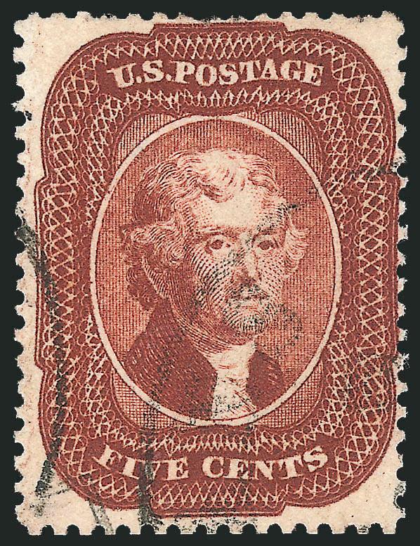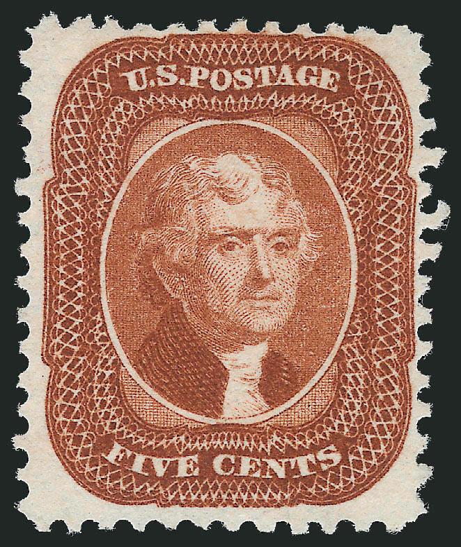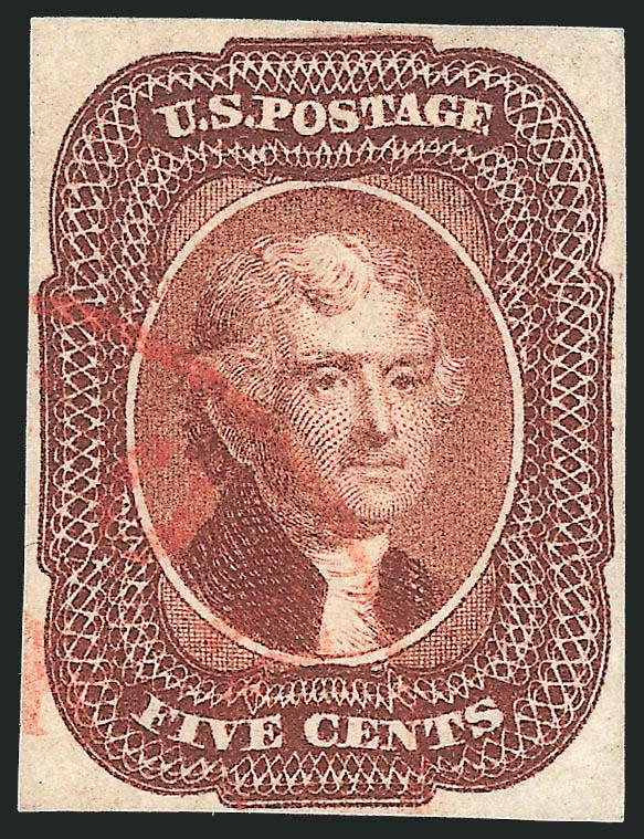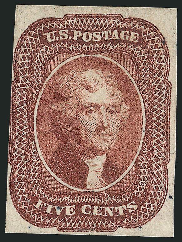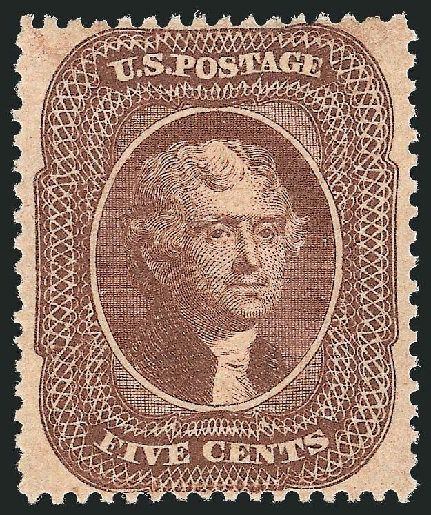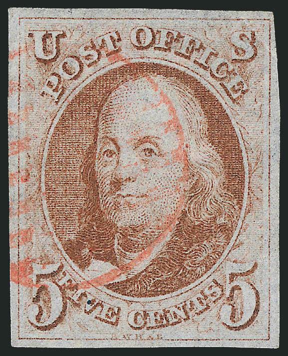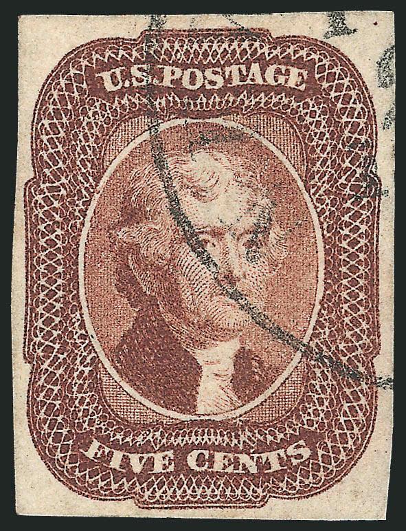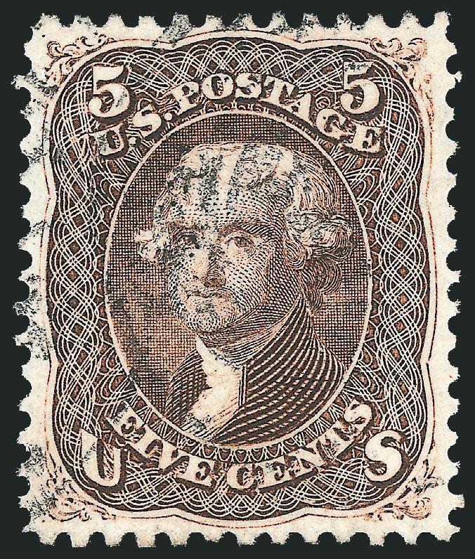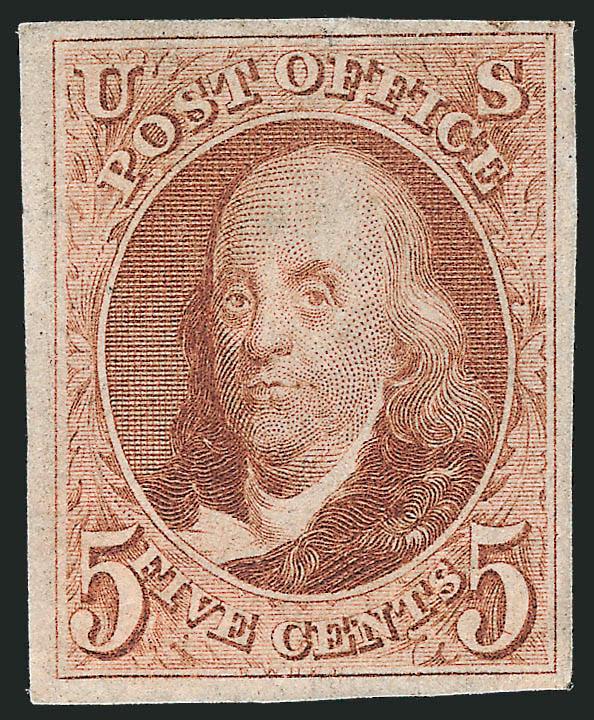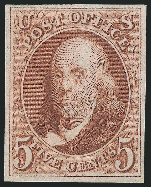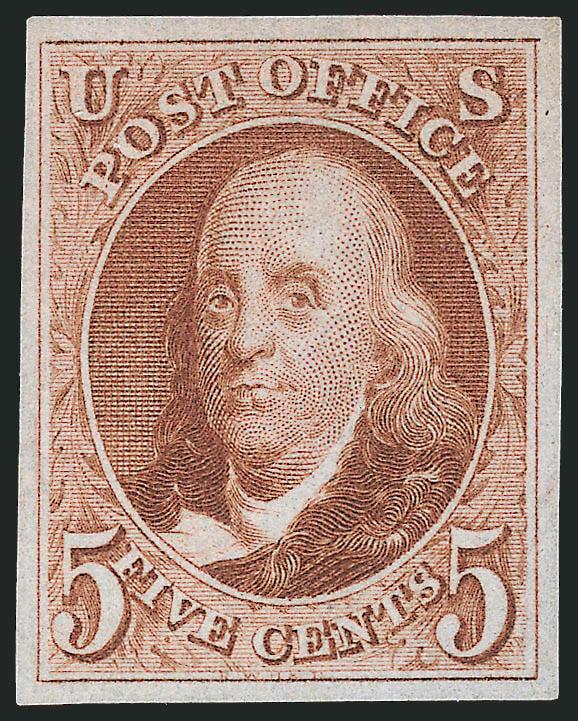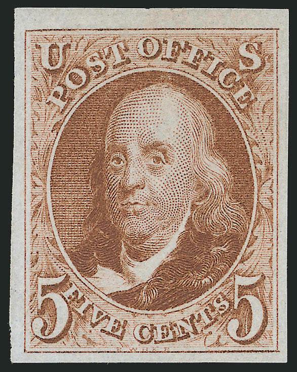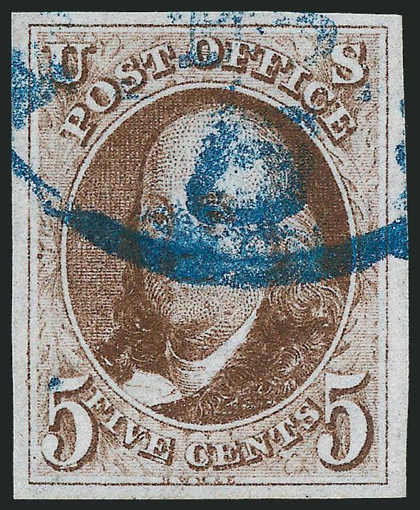 5c Brown (1). Large to huge margins, rich color and clear impression, nicely complemented by