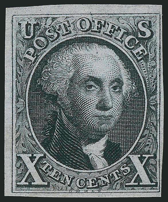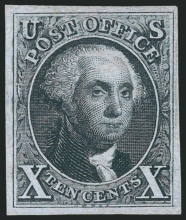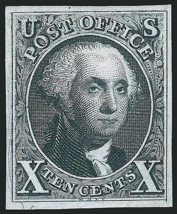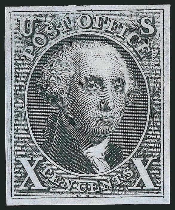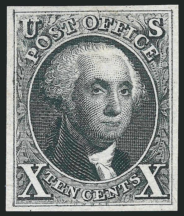 10c Black, Reproduction (4). Without gum as issued, large to huge margins, fresh, sharp impre