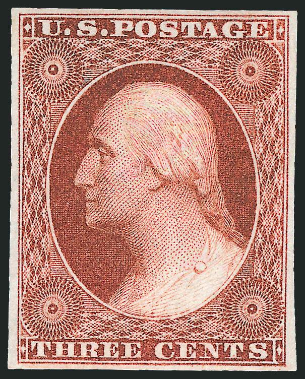 3c Brown Red, Re-Issue (104). Unused (no gum), brilliant color, well-balanced margins, fresh,