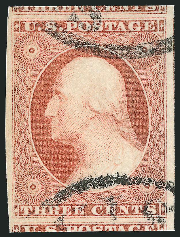3c Rose, E. Grill (88). Wide and beautifully balanced margins, superb centering, bright color