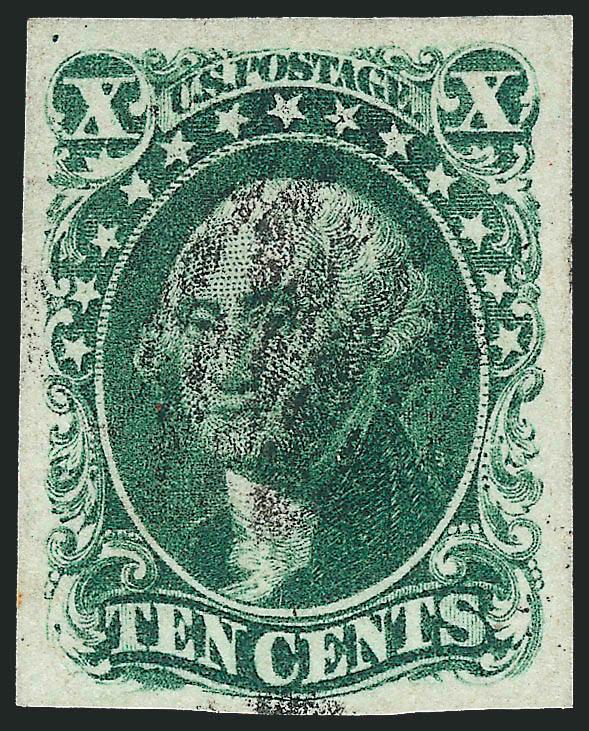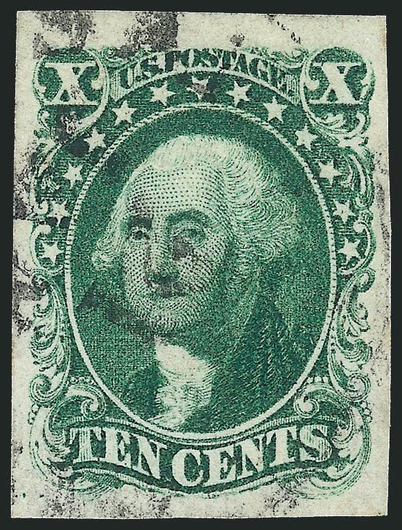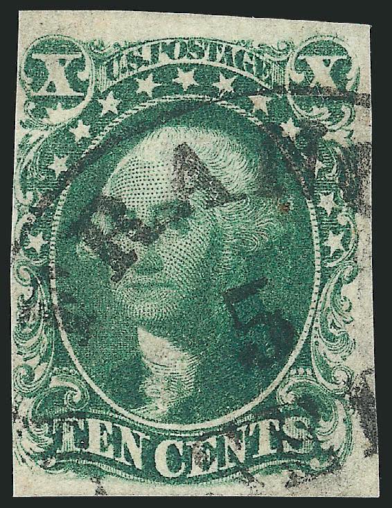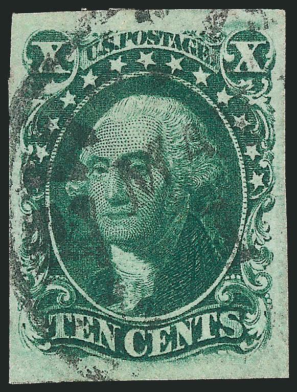 10c Yellow Green, F. Grill (96). Nicely centered with an extra wide top margin, rich color, c