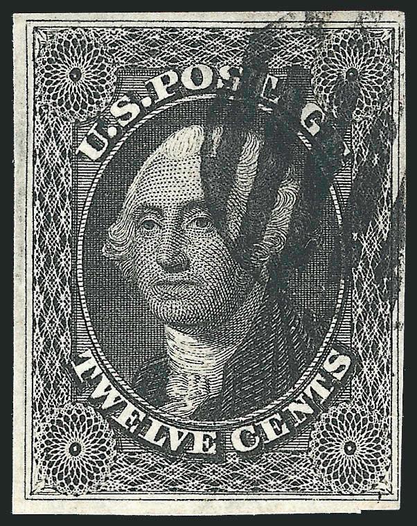 12c Black, E. Grill (90). Wide margins with clear impression, light target cancels, red trans