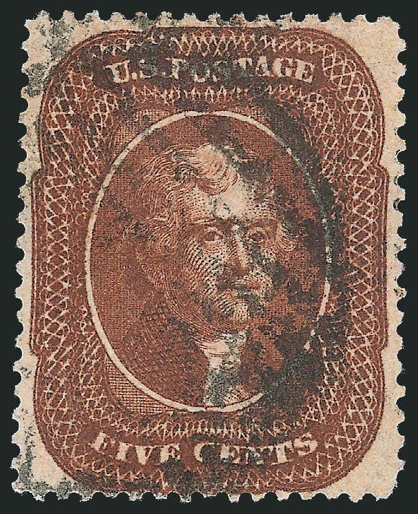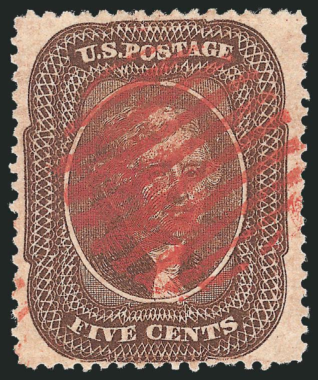 5c Red Brown (75). Intense shade and impression, vivid red grid cancel, Very Fine and
