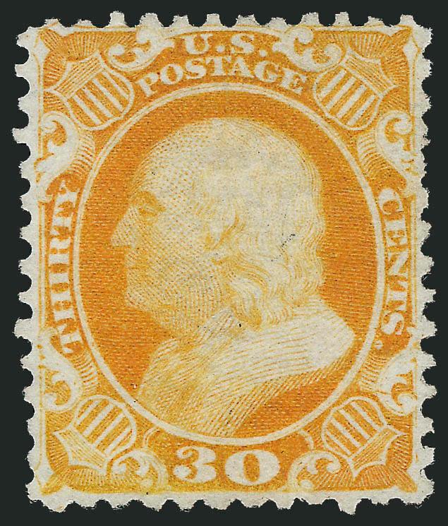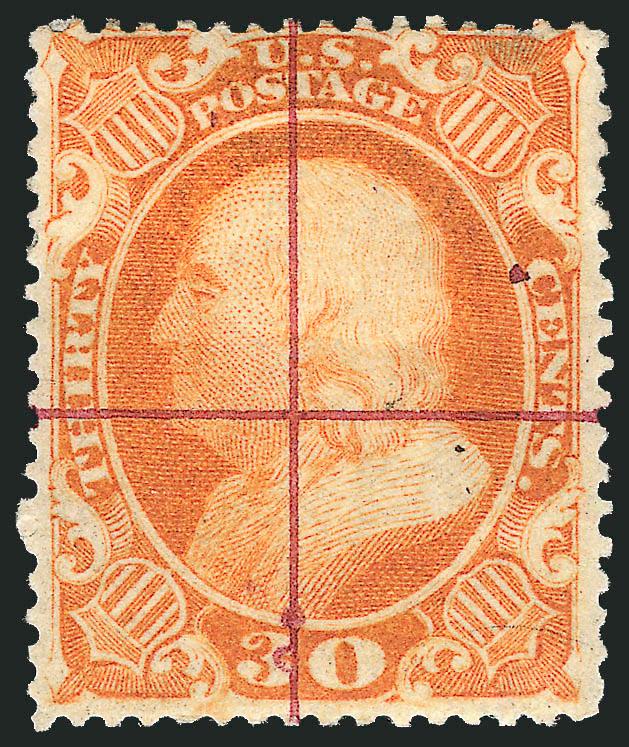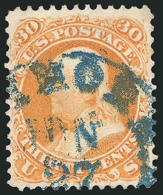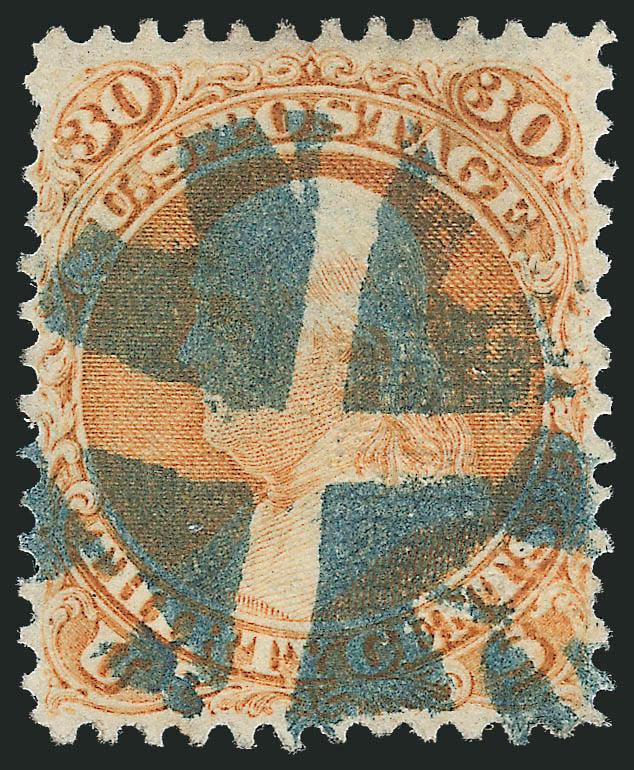 30c Orange, F. Grill (100). Exceptionally well-centered, blue crossroads cancel, faint