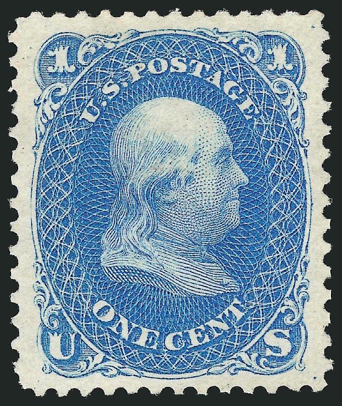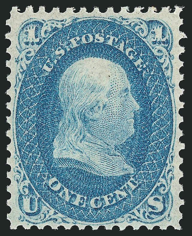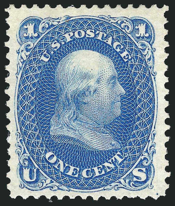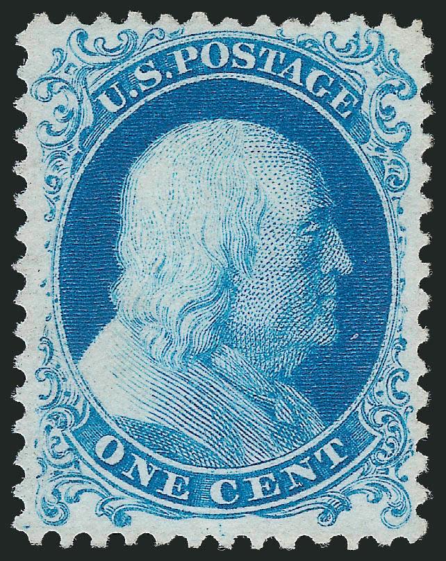 1c Blue, Re-Issue (102). Unused (no gum), fresh color, beautifully centered, Extremely Fine,