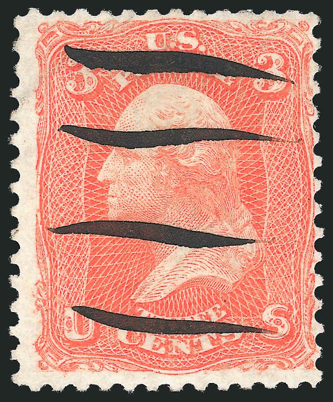 3c Scarlet (74). Four neat pen strokes, vibrant color, horizontal crease at topFINE APP