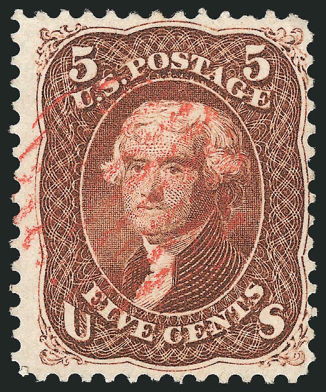 5c Red Brown (75). Handsome centering with perfs essentially clear all around, sensational co