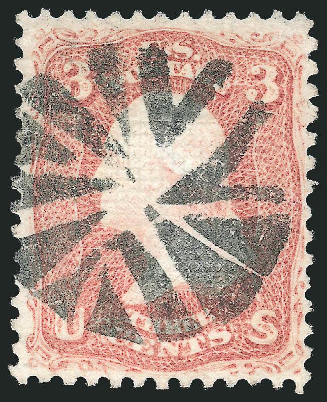 3c Rose, D. Grill (85). Exceptionally well-centered with lovely color, unusual circle of wedg