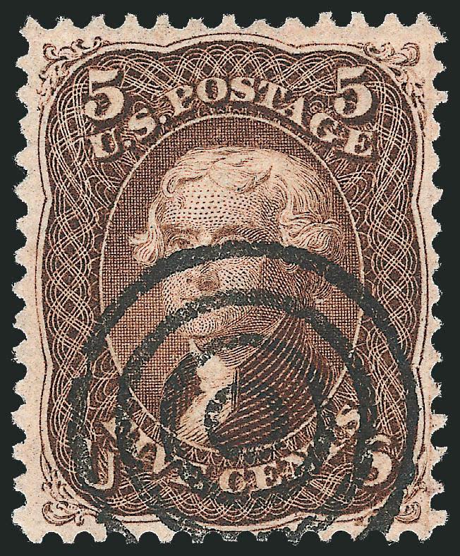 5c Brown, F. Grill, Very Thin Paper (95 var). Well-centered, bright and crisp, bold target ca