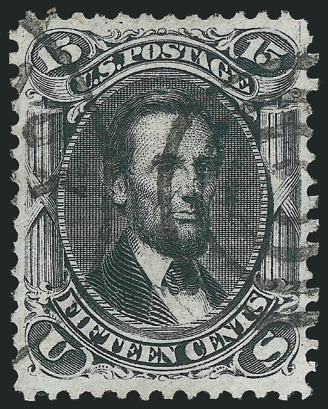 15c Black (77). Bright shade on brilliant paper, proof-like impression, perfect strike of
