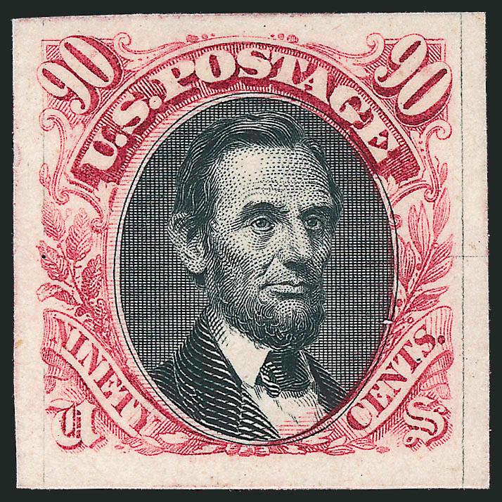 90c Washington, Plate Essays on Stamp Paper (122-E2b, 122-E3). Four of the five Scott-listed