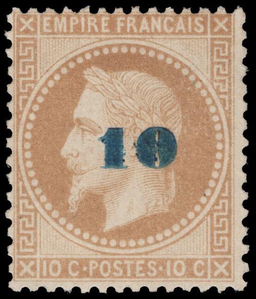 FRANCE, 1871, 10c on 10c BISTER MINT, #49, fresh, o.g., previously hinged, fine-very fine, with 2025 Pascal Scheller short cert., cat. $1,400.00, Yvert #34 @ €3,000.00