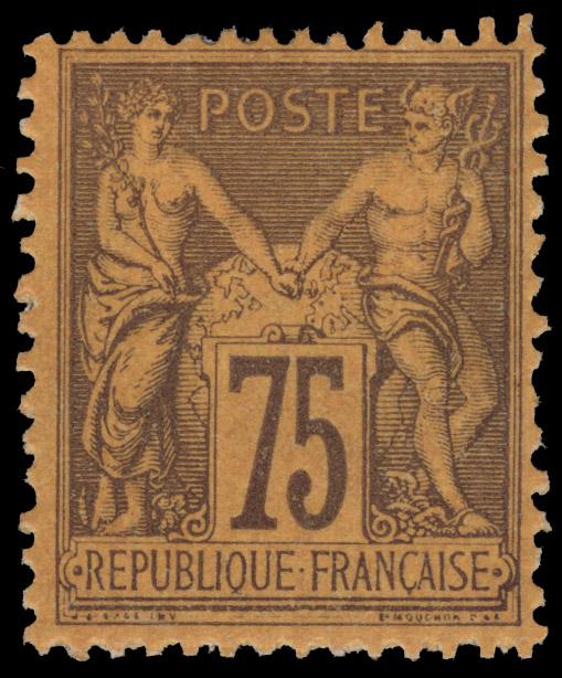 FRANCE, 1890, 75c DEEP VIOLET ON FRANCE MINT, #102, fresh, o.g., h.r., fine-very fine, cat. $215.00