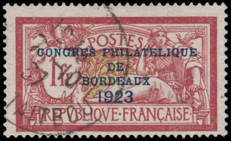 FRANCE, 1923, 1fr BORDEAUX PHILATELIC CONGRESS USED, #197, fine-very fine, signed by Pascal Scheller, cat. $500.00