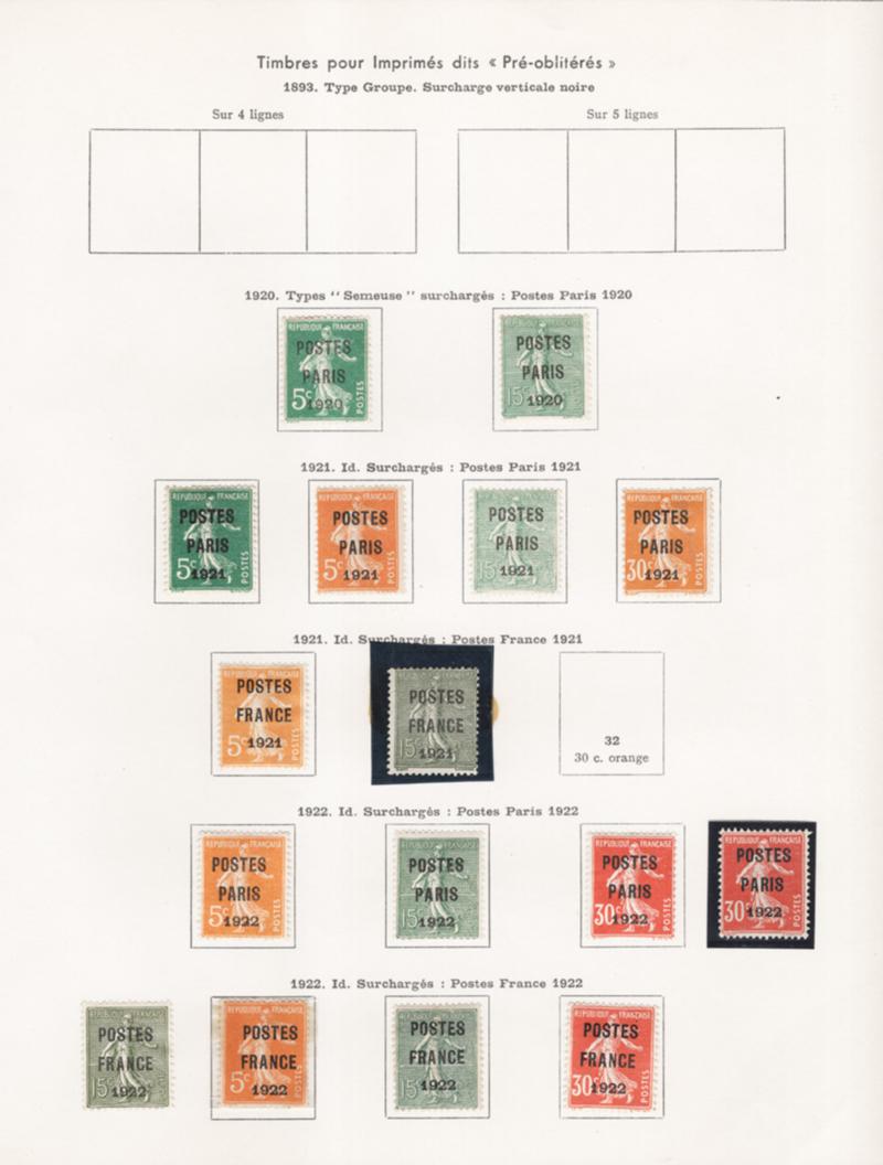 FRANCE, PRE-CANCEL COLLECTION 1920-49 ON CERES PAGES, both mint hinged and used (= no gum), quite comprehensive, overall fine-very fine
