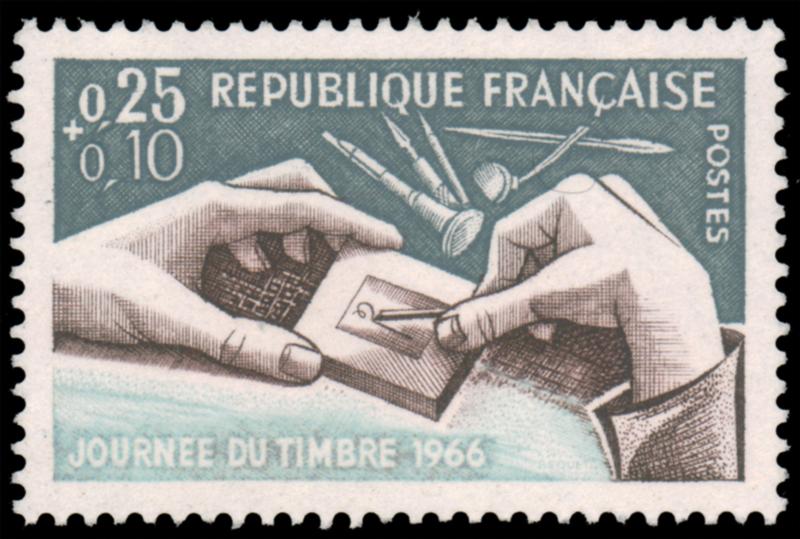 FRANCE, 1966, 25c+10c RED CROSS STAMP DAY - ORANGE COLOR MISSING - MINT NEVER HINGED, #B400var., fresh and very fine, cat. Maury #1477a @ €350.00