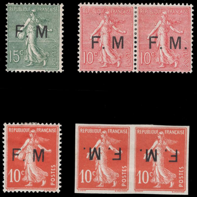 FRANCE, 1904-07 MILITARY ISSUES VARIETIES MINT, #M3//M5 vars, o.g., h.r., 10c imperf pair thin spot, fine-very fine