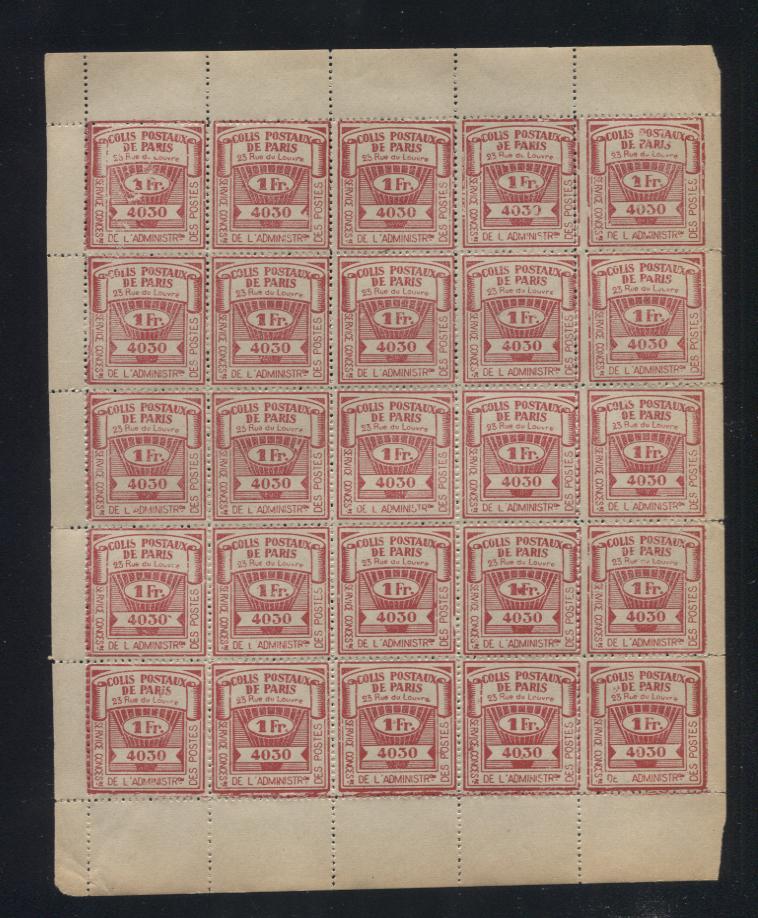 FRANCE, 1897-1938, COLLECTION OF PARCEL POST OF PARIS INTERIOR COMPLETE SHEETS UNUSED, most without gum as issued, includes 14 pages, staple holes from bulletins common for these issues and does not effect the value in Maury, fresh and very fine, Maury @ €3,000.00