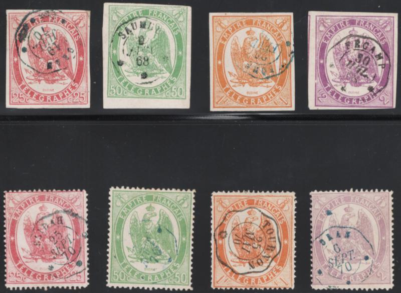 FRANCE, 1868 TELEGRAPH STAMPS IMPERF AND PERF USED, Yvert #1-8, first two small flaws, others sound, fine-very fine, cat. Yvert €1,172.00