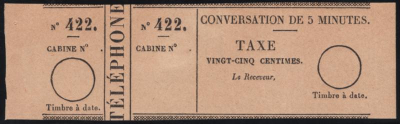 FRANCE, 1880, 25c TYPESET TELEPHONE STAMP BLACK ON BUFF UNUSED, Yvert Telephone #1, without gum, thin spot in left selvage well outside stamp design (can easily be removed), very fine, signed by Pascal Scheller, cat. Yvert €2,250.00
