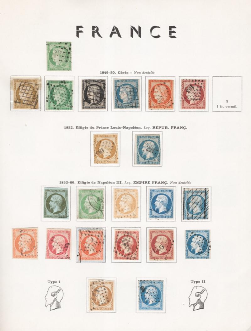 FRANCE COMPREHENSIVE OLD-TIME MINT & USED COLLECTION 1849-1960s ON CERES PAGES, replete with better issues often hand-picked for appearance and condition, first issue complete except 1fr vermilion, Napoleon Empire incl. 1fr (four margins, small thin), attractive group of 1870 Bordeaux issues,