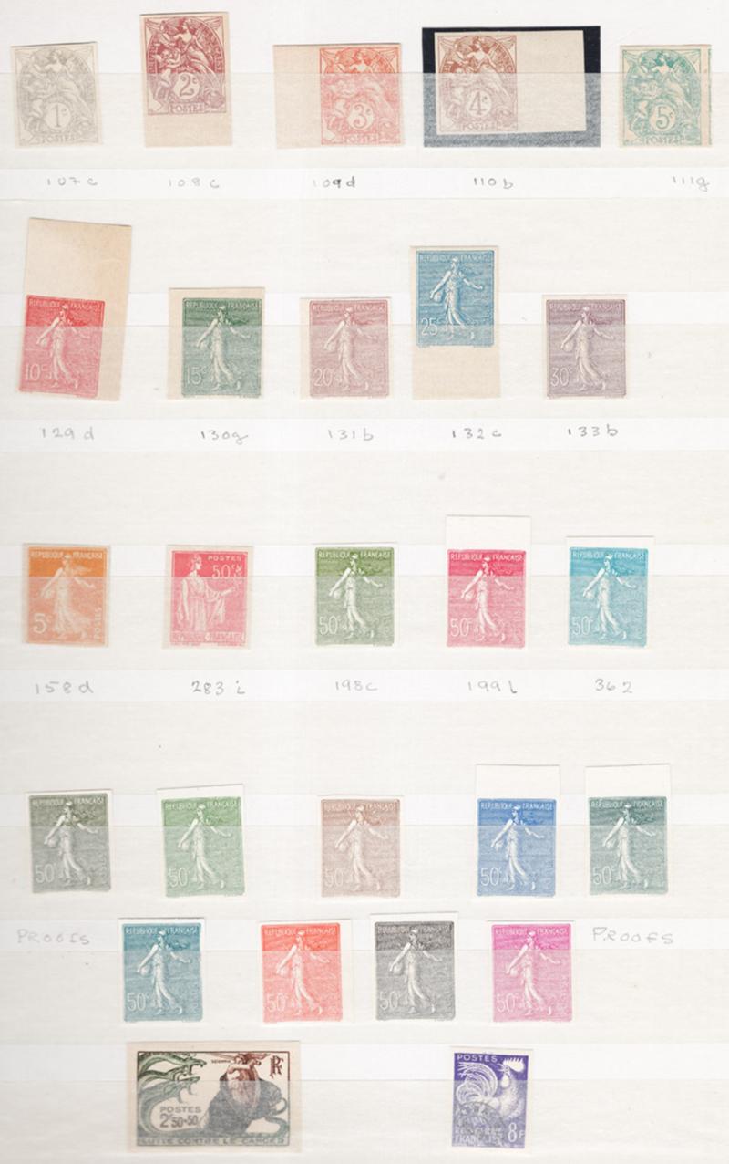 FRANCE IMPRESSIVE COLLECTION OF IMPERFORATES 1900-1996 IN FOUR STOCKALBUMS, most with Yvert numbers in pencil below the stamp, starting off with an attractive group of mint never hinged 1900 Liberty (Blanc) issues as well as the later Sower issues, further proofs of the latter issue, proceedi