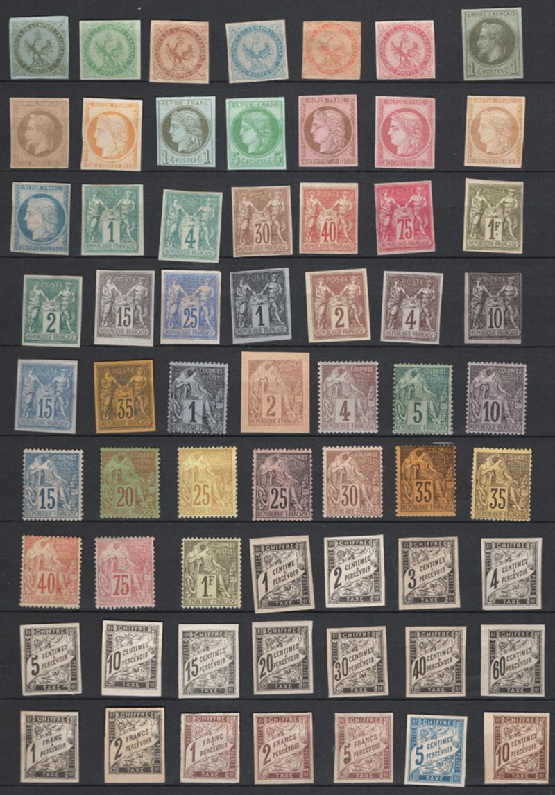 FRENCH COLONIES GENERAL ISSUES MINT/UNUSED COLLECTION 1859-86, quite a complete group incl. e.g. 1-6, 7, 10, 12, 13-14, 24-39, J12, J13a, few faults, most sound, margins as shown in scan, cat. $4,500.00