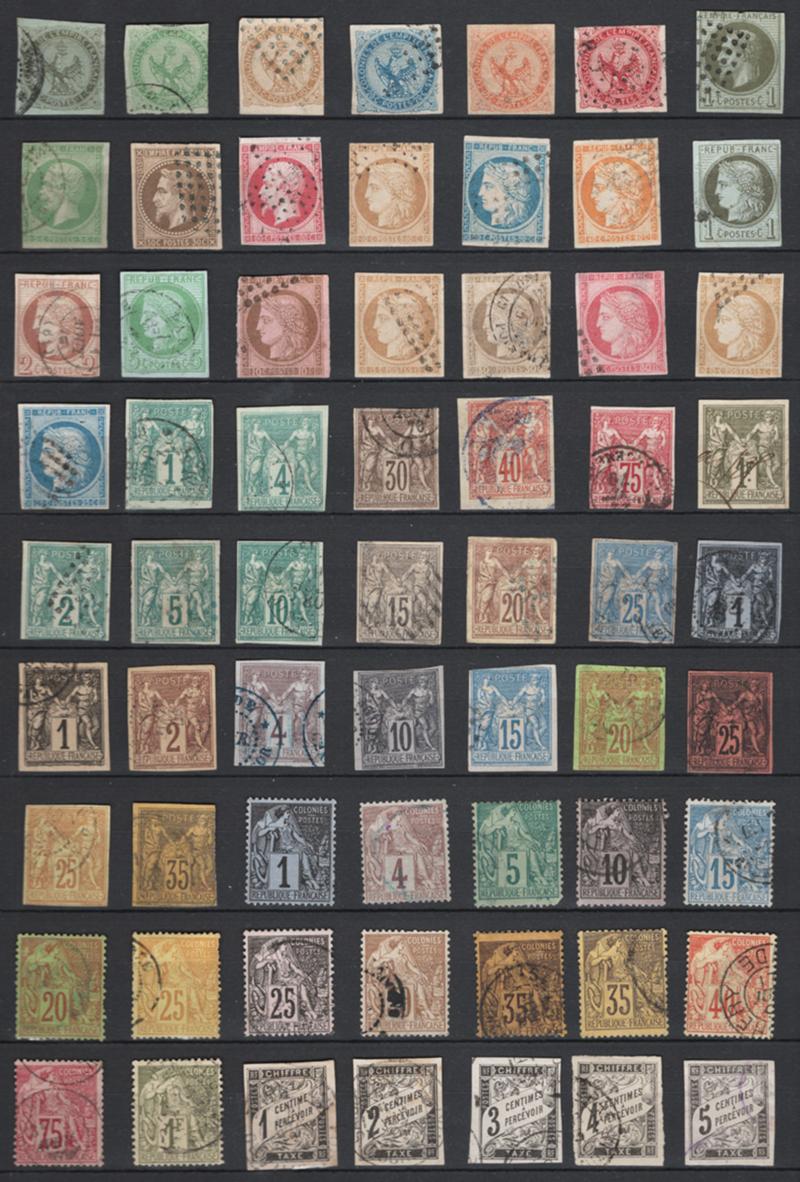 FRENCH COLONIES GENERAL ISSUES USED COLLECTION 1859-86, almost complete incl. e.g. nos. 1-6, 7, 8, 9, 15, 17, 24-29. few faults, most sound fine-very fine, cat. $2,900.00