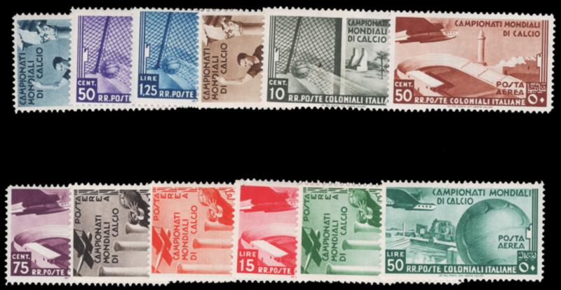 ITALIAN COLONIES, 1934 SOCCER SET MINT, #46-50/C29-C35, attractive previously hinged, fine-very fine, cat. $585.00