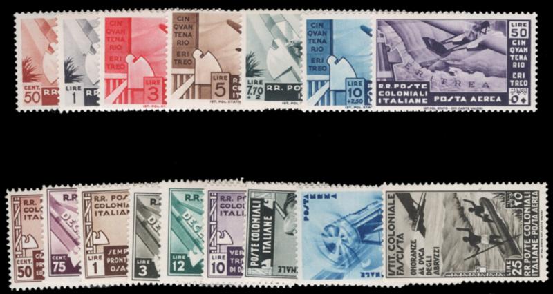 ITALIAN COLONIES, 1933-34 AIR POST SETS MINT, #C13-C19, C20-C27, C28, lightly hinged, no. C28 NH, fine-very fine, cat. $386.00
