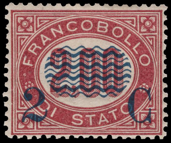 ITALY, 1878, 2c on 2l LAKE MINT, #42, fresh, o.g., h.r., fine-very fine, cat. $550.00