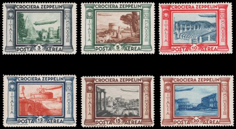 ITALY, 1933 ZEPPELIN AIR POST SET NH, #C42-C47, faintest hint of gum toning on a couple, very fine, cat. $330.00