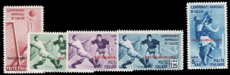 AEGEAN ISLANDS, 1934 SOCCER SET MINT, #31-35, fresh, h.r., fine-very fine, cat. $530.00