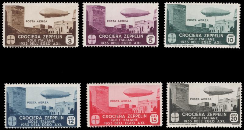 AEGEAN ISLANDS, 1933 ZEPPELIN SET MINT, #C20-C25, lightly hinged, very fine, cat. $510.00