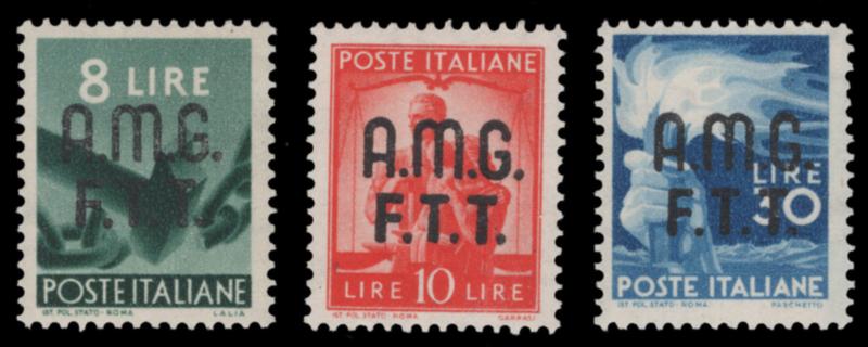 TRIESTE ZONE A, 1948, 8l-30l REGULAR ISSUE NH, #15-17, fresh, fine-very fine, cat. $301.50