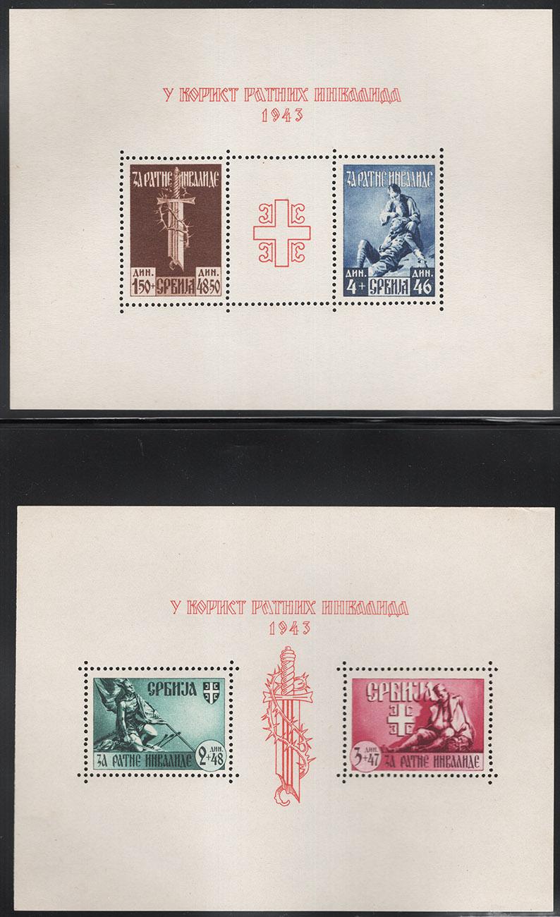 SERBIA, GERMAN OCCUPATION, 1943, WAR VICTIMS SOUVENIR SHEETS NH, #2NB27-2NB28, normal gum disturbances due to the gum used, fine-very fine, cat. $480.00