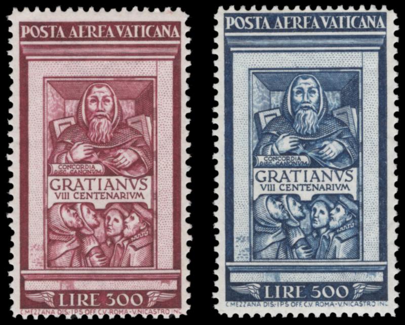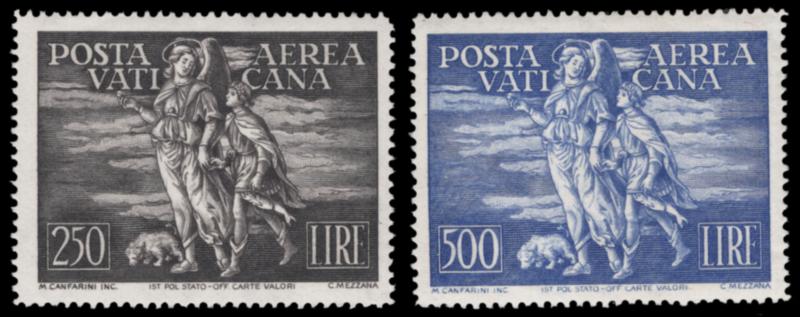 VATICAN CITY, 1951, 300l-500l FRANCISCUS AIR POST NH, #C20-C21, fresh, very fine, cat. $365.00
