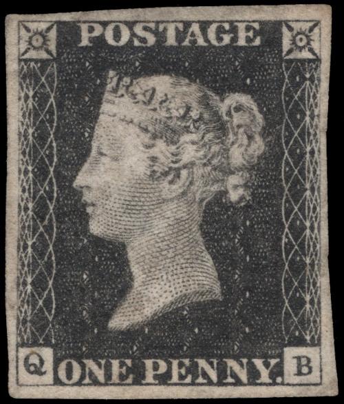 GREAT BRITAIN, 1840, 1p BLACK PLATE 1b MINT, #1, Gibbons #2, 'Q-B", full margins, part o.g., minor soiling of no consequence, very fine, with 1974 RPS cert., cat. $14, 250.00, Gibbons £12,500.00
