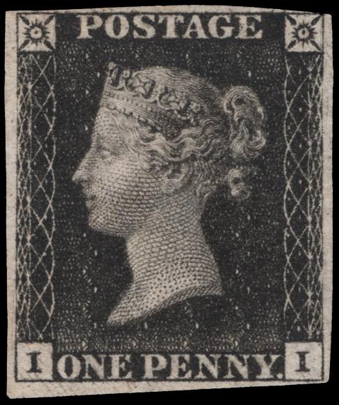 GREAT BRITAIN, 1840, 1p BLACK PLATE 2 UNUSED, #1, Gibbons #2, 'I - I", full margins, barely touching at top right corner, without gum, slight vertical creasing, very fresh and fine-very fine, with 2007 Karl-Albert Louis BPP cert., cat. $14,250.00, Gibbons £12,500.00