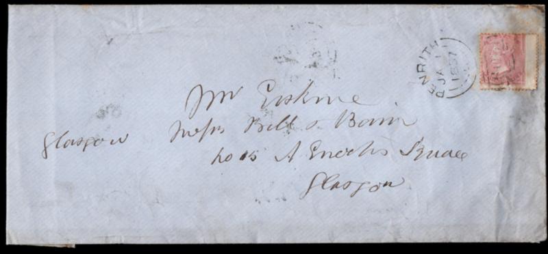GREAT BRITAIN, 1857, 4p ROSE ON WHITE WMK LARGE GARTER USED ON FORST DAY COVER, #26, defective and toned, bit loose, still partly affized to the cover, tied by Penrith duplex d.a.on Jan. 1, 1857 cover, some overall aging, rare first day of, with 2009 RPS cert.