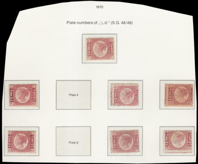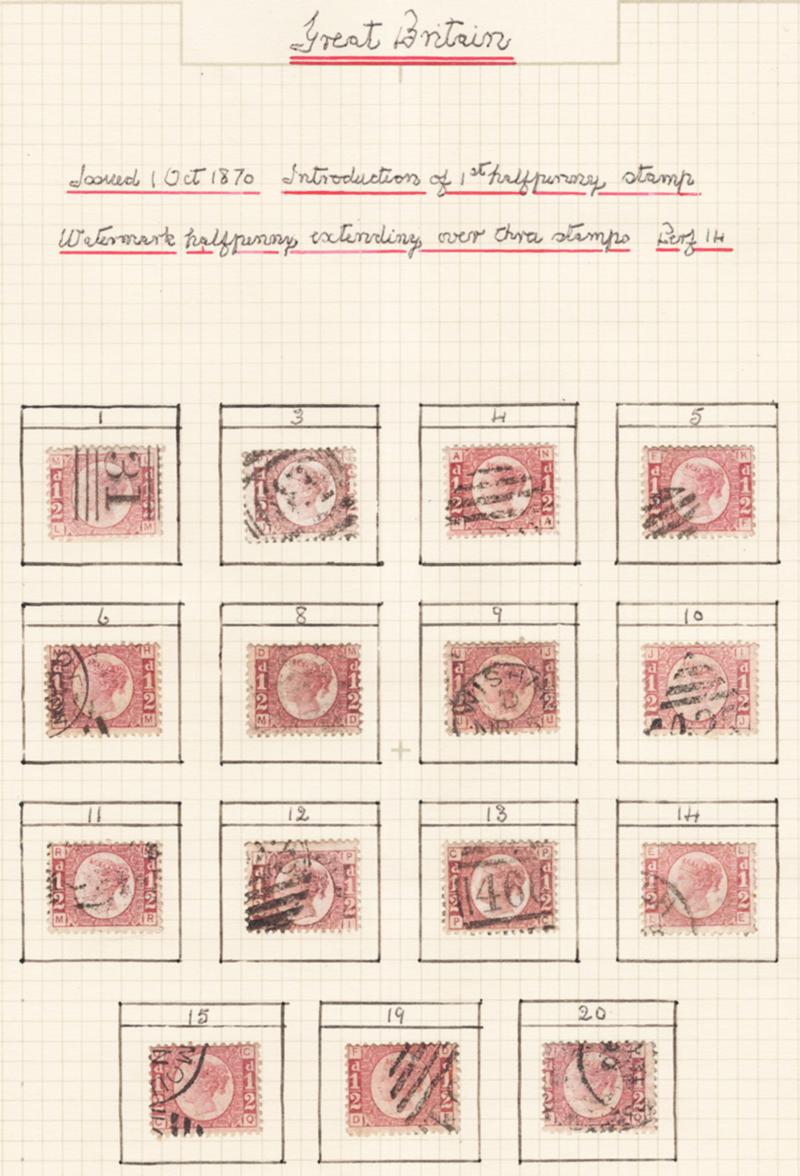 GREAT BRITAIN, 1870, ½p ROSE UNUSED VARIOUS PLATES, #58, incl. paltes 1, 3, 5, 6, 8, 10, 11, 12, 19 and 20, most no gum or dist. o.g., overall fine-very fine, cat. $2,800.00