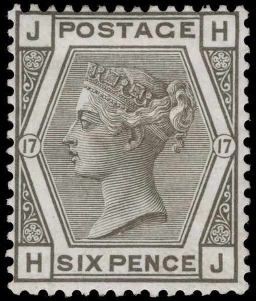 GREAT BRITAIN, 1880, 6p GRAY WMK SPRAY OF ROSE PLATE 17 MINT, #62, fresh, deep shade, o.g., small h.r., fine-very fine, cat. $1,100.00, Gibbons #147 @ £950.00