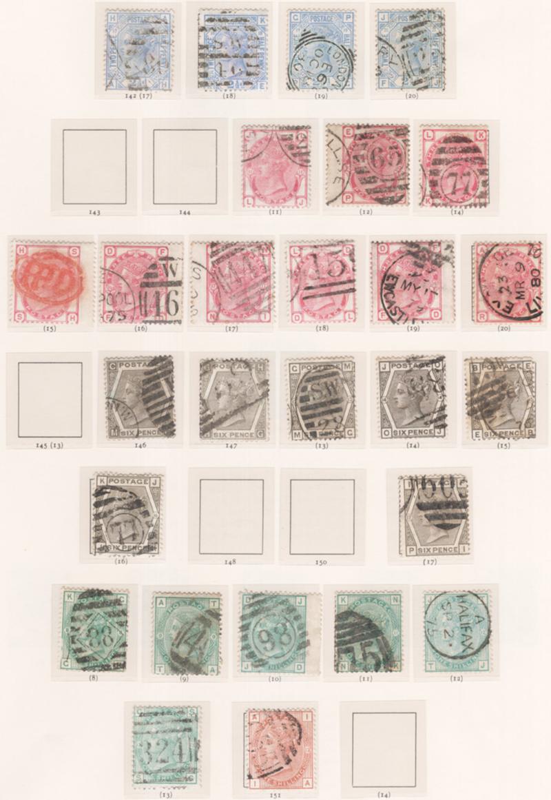 GREAT BRITAIN VICTORIA ISSUES 1875-84 COMPREHENSIVE USED COLLECTION ON GIBBONS PAGES, numerous better issues largely complete with plate numbers of most issues, further incl. several scarce bluish paper high values with indications that these once had RPS certs, however these are not present