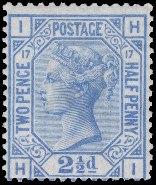 GREAT BRITAIN, 1880, 2½p ULTRAMARINE WMK ORB PLATE 17 MINT, #68, "I-H", lightly hinged o.g., fine, cat. $675.00, Gibbons #142 @ £575.00