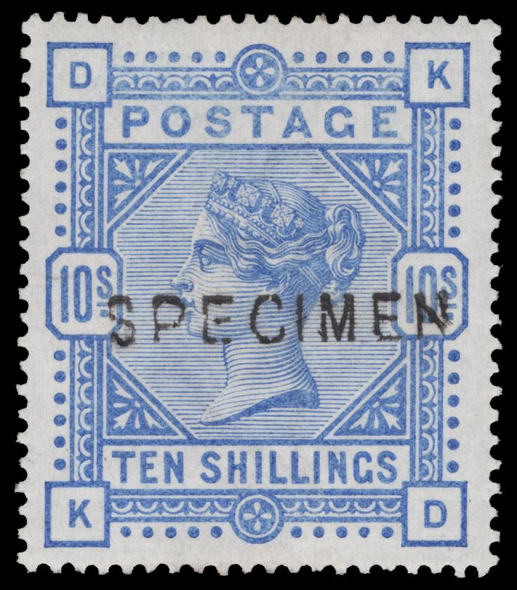 GREAT BRITIAN, 1884, 10sh ULTRAMARINE "SPECIMEN" OVERPRINT,#109S, fresh with full o.g., lightly hinged, very fine, cat. Gibbons #183s @ £550.00