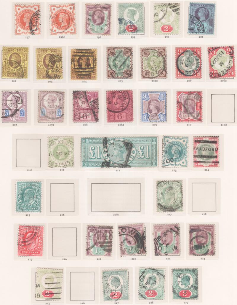 GREAT BRITAIN 1887-1913 VICTORIA, EDWARD VII & GEORGE V SPECIALIZED USED COLLECTION ON GIBBONS PAGES, including many of the scarcer printings and shades with Edward VII issues printed by De La Rue & Co., Harrison & Sons and Somerset House, three pound values present, select condition througho