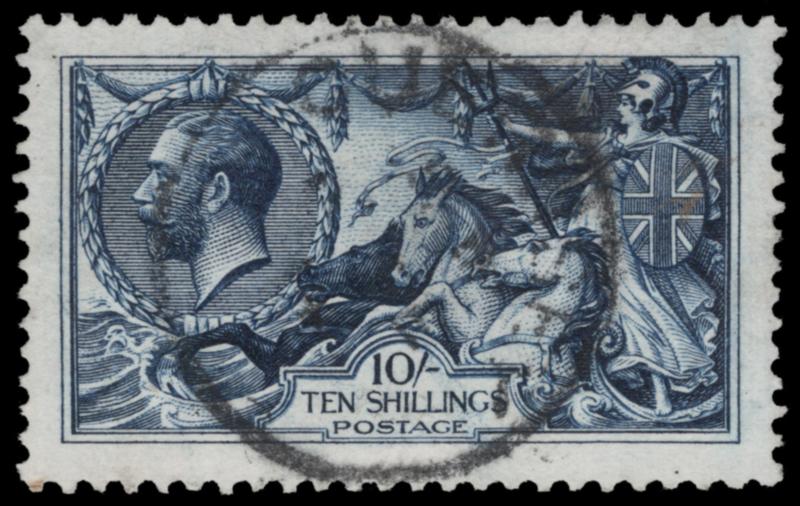 GREAT BRITAIN, 1915, 10sh INDIGO BLUE WATERLOW USED, #175c, well-centered, Guernsey d.s., very fine, with 2025 Wenvoe cert., cat. $500.00, Gibbons #402 @ £475.00