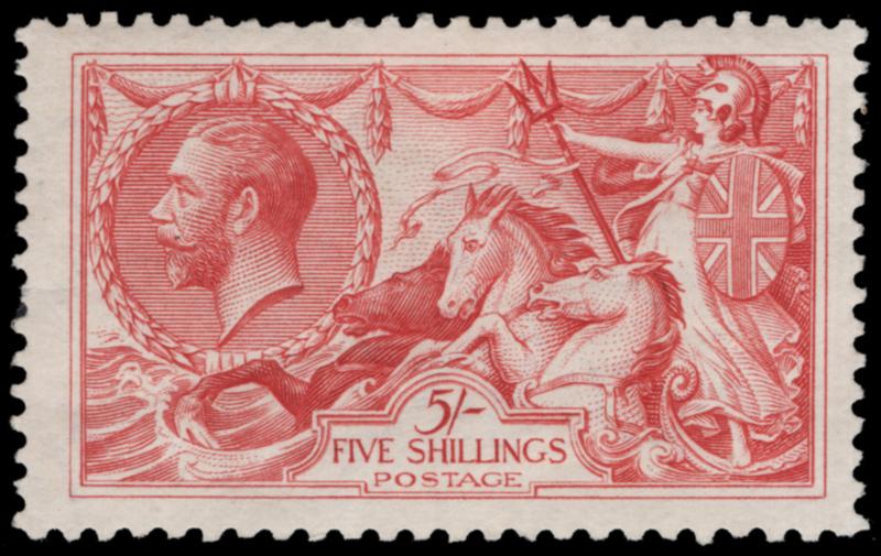 GREAT BRITAIN, 1919, 5sh CARMINE BRADBURY MINT, #180, fresh, h.r., fine-very fine, cat. $350.00