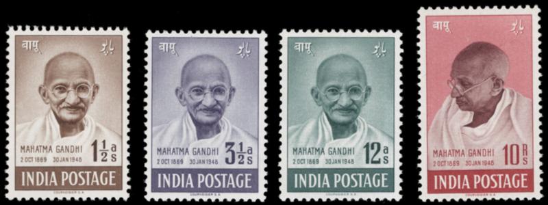 INDIA, 1948, 1½a-10r GANDHI SET MINT, #203-06, fresh, lightly hinged, very fine, cat. $557.50